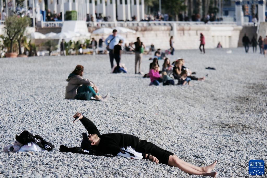 1月3日,人們在法國南部城市尼斯的海邊休閑。