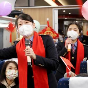 春運首日,在北京豐臺開(kāi)往福州的D759次列車(chē)上,擔任乘務(wù)工作的中國鐵路南昌局集團有限公司福州客運段福京車(chē)隊的黨團員、青年骨干組成志愿者服務(wù)隊為旅客表演文藝節目、開(kāi)展互動(dòng)游戲,讓春運旅途充滿(mǎn)歡歌笑語(yǔ)。