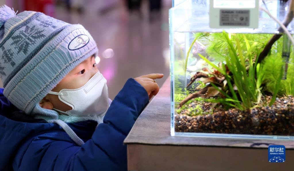 1月19日,一名小朋友在沈陽(yáng)北市花鳥(niǎo)魚(yú)市場(chǎng)里觀(guān)看觀(guān)賞魚(yú)。