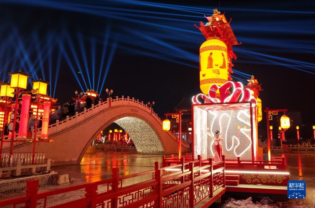 當日,河北省唐山市豐南區河頭老街張燈結彩,吸引市民前來(lái)逛街景、看演出、品美食,處處洋溢著(zhù)濃濃的年味兒。
