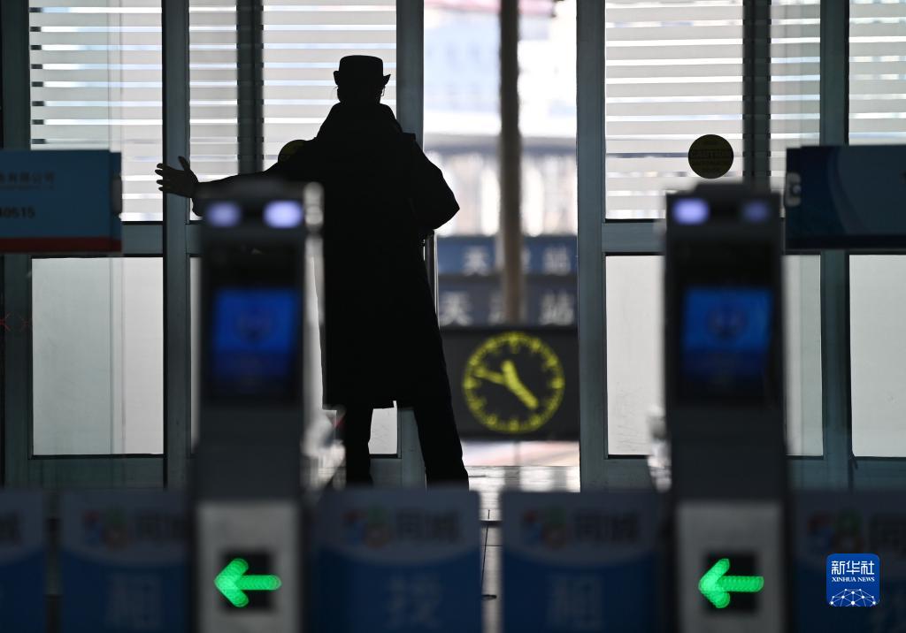 1月21日,在鐵路天津站,客運值班員準備開(kāi)始檢票。