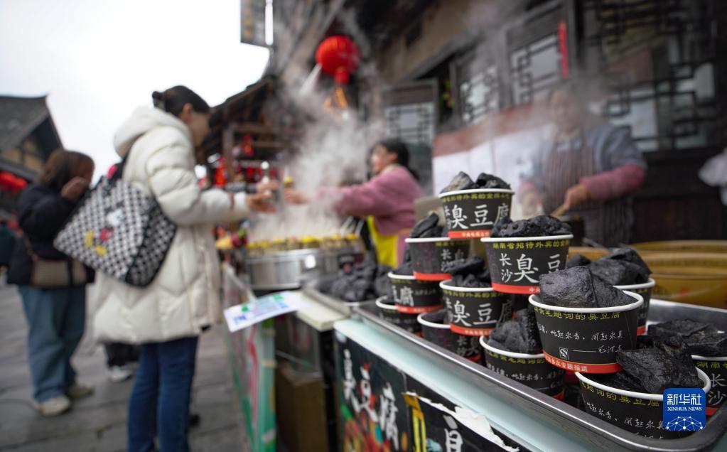 1月22日,人們在貴州省黔東南苗族侗族自治州丹寨縣萬(wàn)達小鎮景區選購當地特色小吃。