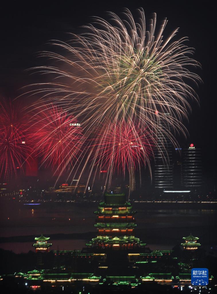 1月22日大年初一晚,2023年南昌市迎春煙花晚會(huì )在江西省南昌市贛江老官洲上演。絢爛繽紛的煙花在夜空中爭奇斗艷,為市民及游客送上新春祝福。