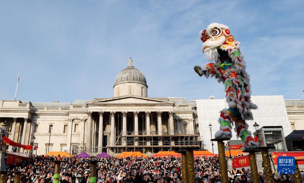 當日,英國倫敦特拉法加廣場(chǎng)舉行春節慶典,慶祝兔年新春佳節。