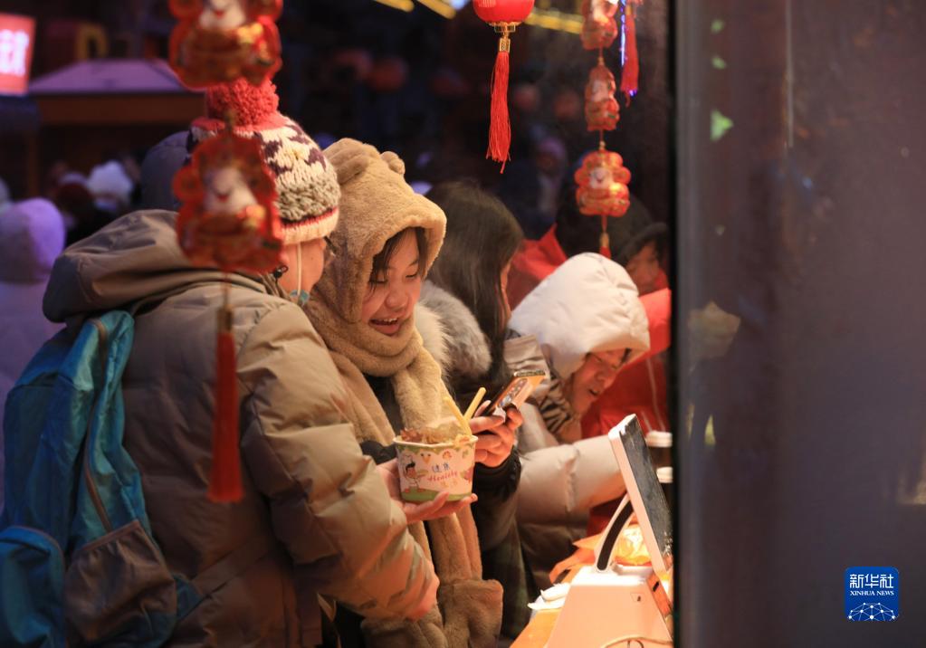 1月23日,市民在沈陽(yáng)新春皇寺廟會(huì )上品嘗美食。
