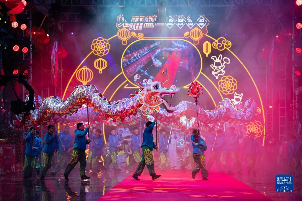 1月24日,演員在匯演上表演舞龍。