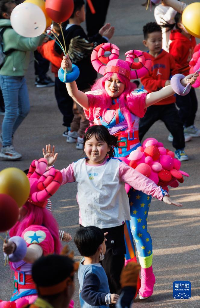 小游客在廣州長(cháng)隆歡樂(lè )世界和演員互動(dòng)(1月22日攝)。
