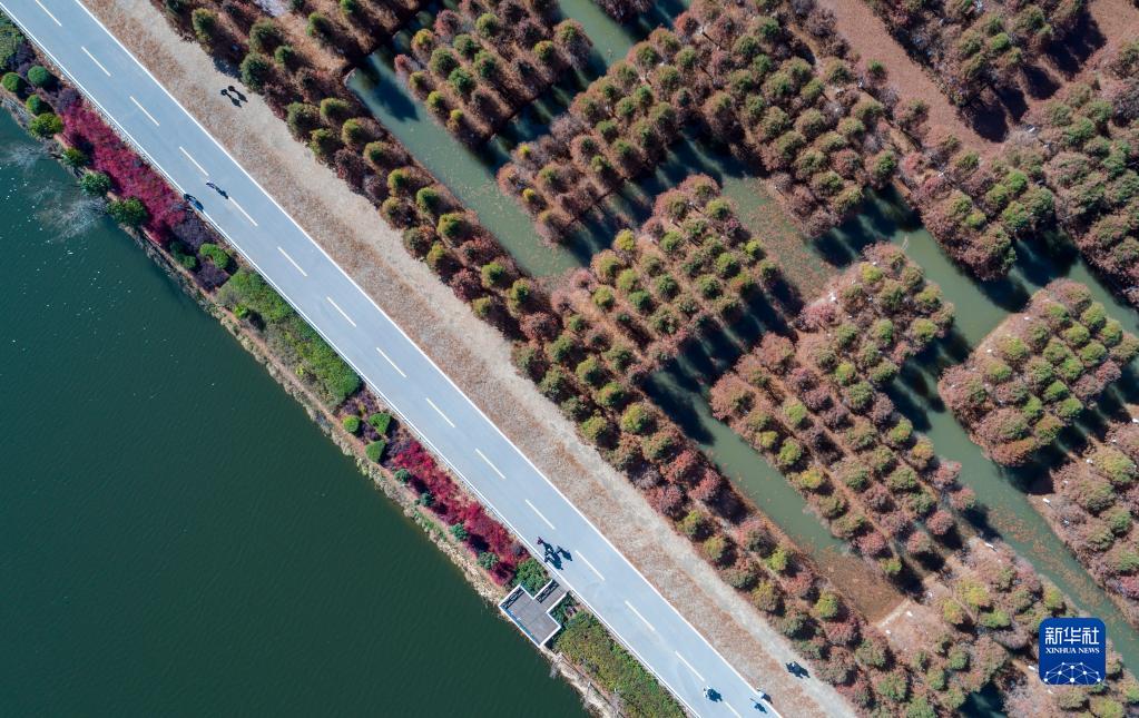 位于云南省曲靖市的麒麟水鄉水杉林一景(1月25日攝,無(wú)人機照片)。