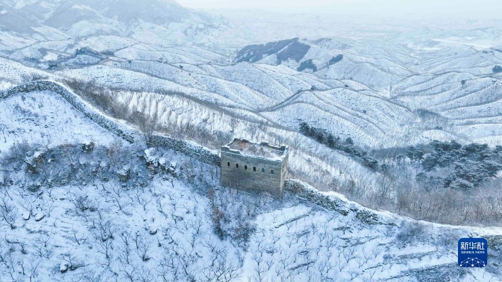 這是1月23日拍攝的河北省遵化市長(cháng)城雪景(無(wú)人機照片)。