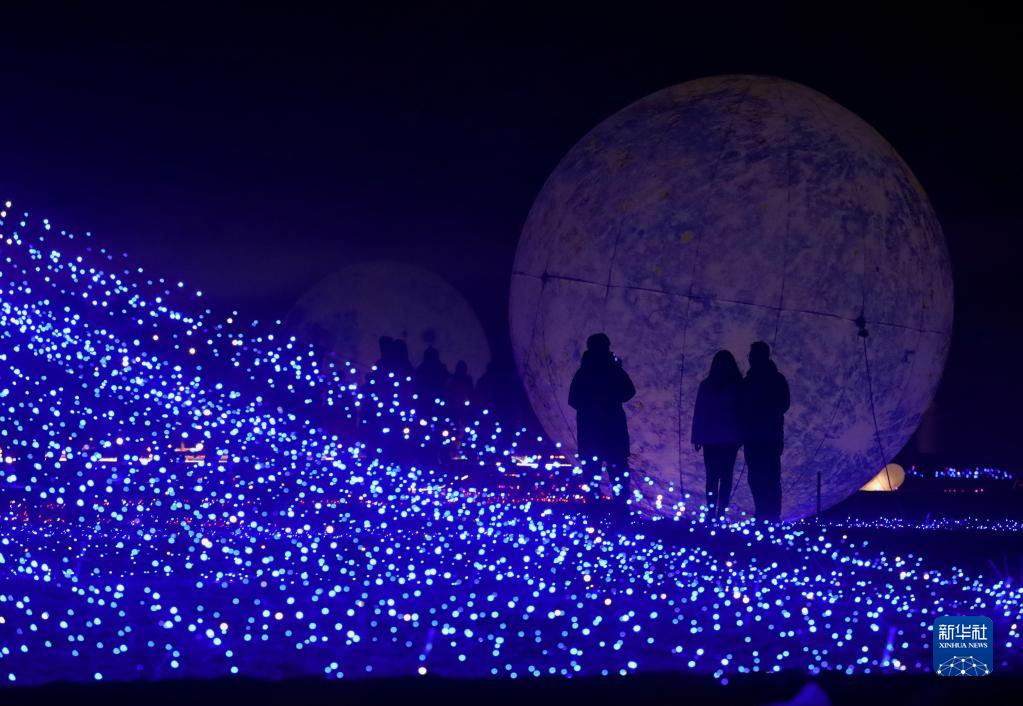 1月25日,游客在河北省石家莊晉州市周家莊鄉第九生產(chǎn)隊欣賞燈光秀。