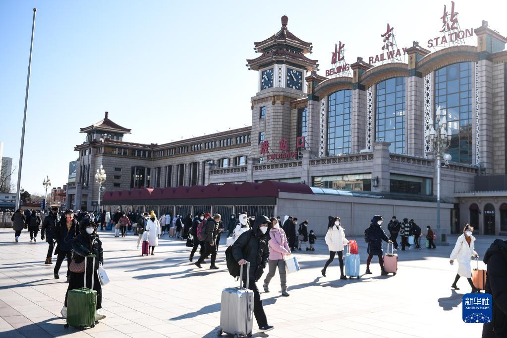1月27日,返京旅客走出北京站。