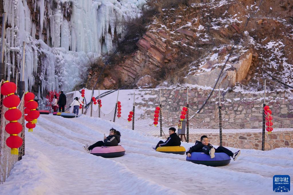 正月里,位于太行山深處的河北省邢臺市天河山景區迎來(lái)眾多游客。人們腳踏冰雪,在這里體驗雪地游樂(lè )設施,欣賞冰瀑美景。