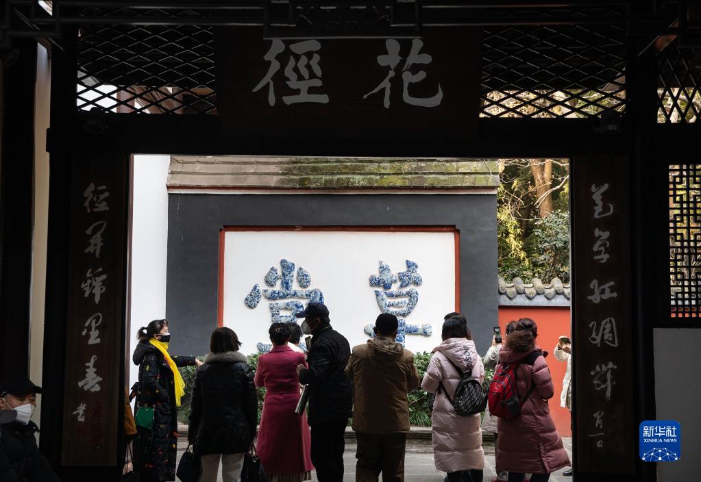 1月28日,游客在四川成都杜甫草堂游覽。