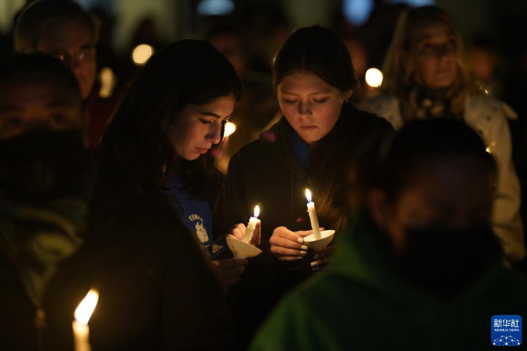 1月27日,人們在美國加利福尼亞州半月灣市舉行的守夜活動(dòng)中哀悼槍擊事件遇難者。