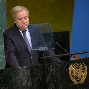 1月27日,在位于紐約的聯(lián)合國總部,聯(lián)合國秘書(shū)長(cháng)古特雷斯在“國際大屠殺紀念日”紀念活動(dòng)上發(fā)表講話(huà)。