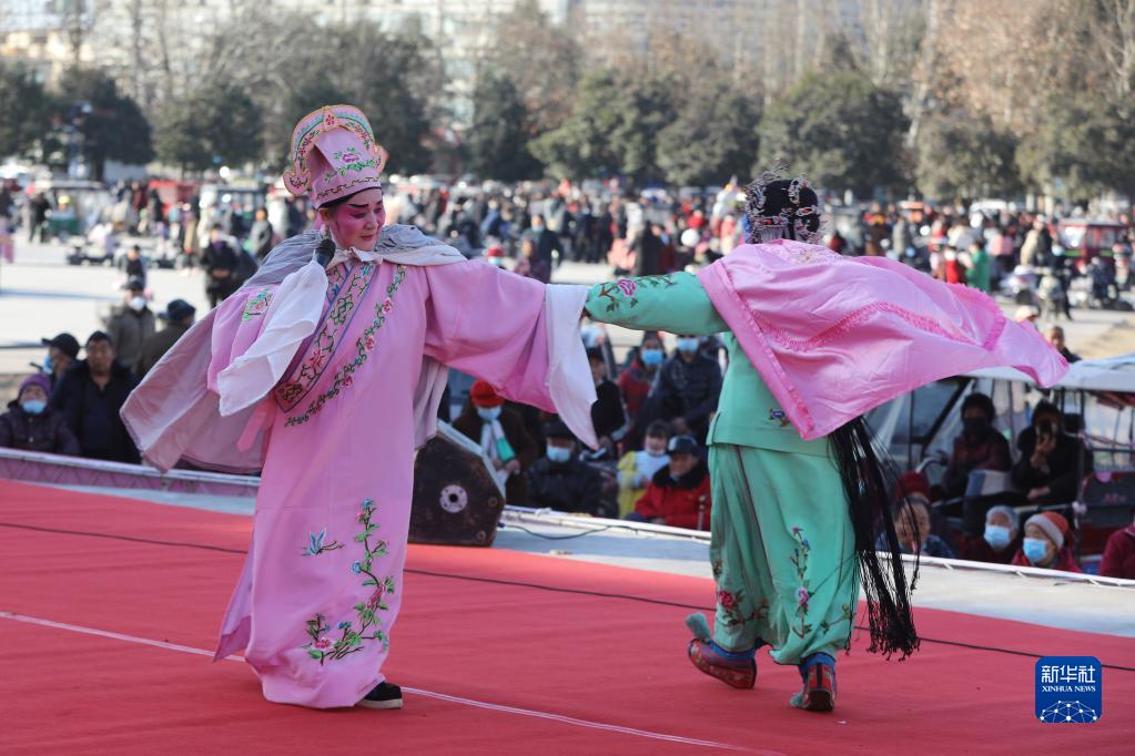 1月29日,在溫縣文化廣場(chǎng),演員在表演豫劇。