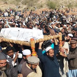 1月30日,在巴基斯坦西北部開(kāi)伯爾-普什圖省,人們參加遇難者的葬禮。