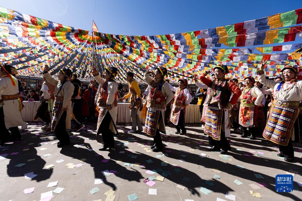 1月30日,身著(zhù)盛裝的藏族群眾跳著(zhù)歡快的鍋莊。