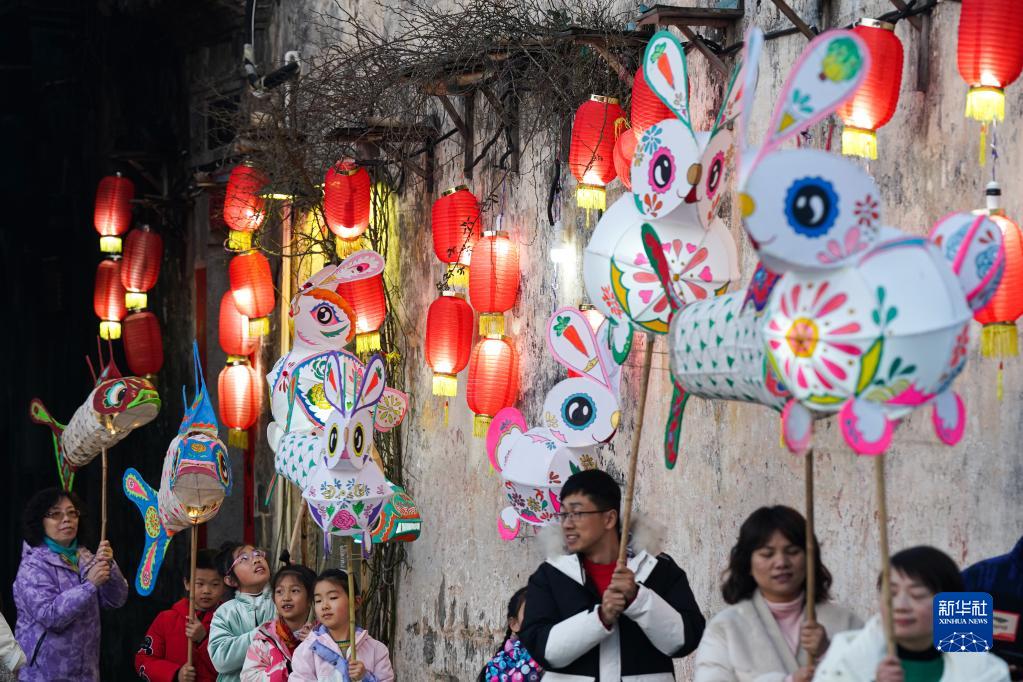 兔年新春,在安徽省黃山市黟縣宏村,當地舉行的花燈研習班邀請游客共同制作兔子形狀花燈。傍晚時(shí)分,五顏六色的“兔燈”在古村中點(diǎn)亮,游客在“鬧花燈”中體驗徽州年俗。