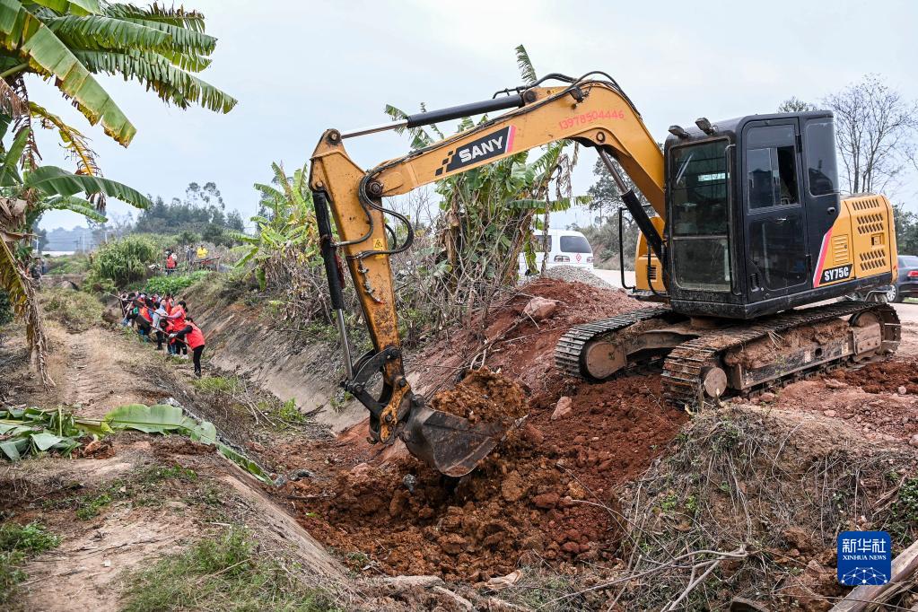 2月1日,在廣西興業(yè)縣沙塘鎮,挖掘機在整修灌渠。
