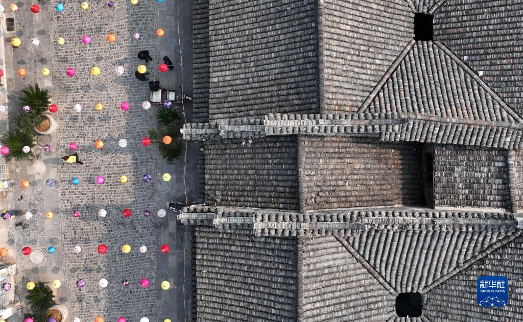 這是2月1日拍攝的舊州古鎮一角(無(wú)人機照片)。