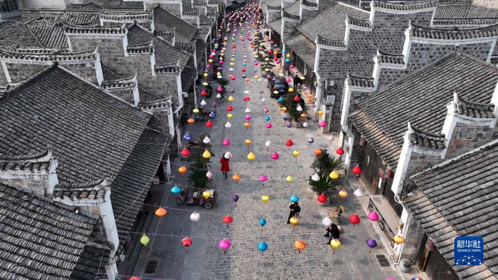 這是2月1日拍攝的舊州古鎮一角(無(wú)人機照片)。