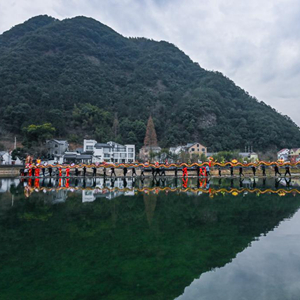 當日是農歷正月十一,在梅花鑼鼓的伴奏下,浙江省杭州市富陽(yáng)區湖源鄉窈口村女子板龍隊舉起由50余張板凳連起來(lái)的百米板龍舞動(dòng)起來(lái),拉開(kāi)了湖源鄉新春系列迎元宵活動(dòng)的序幕。