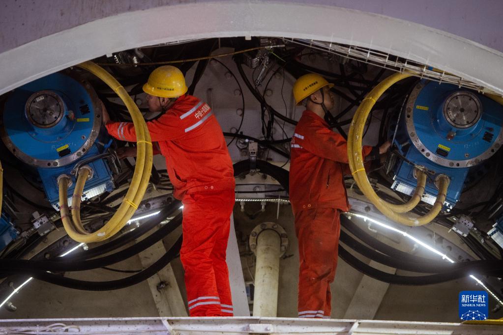 2月1日,中鐵十四局工人在檢查刀盤(pán)驅動(dòng)電機。