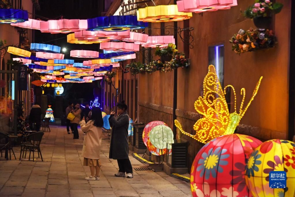 元宵節臨近,青島市市南區“逛街里”新春燈會(huì )上的璀璨花燈點(diǎn)亮了老城區的大街小巷,吸引人們前來(lái)賞燈。