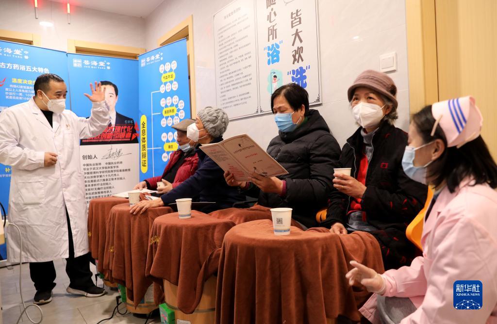 2月2日,社區居民在足部保健時(shí)聽(tīng)中醫師講解經(jīng)絡(luò )保健知識。