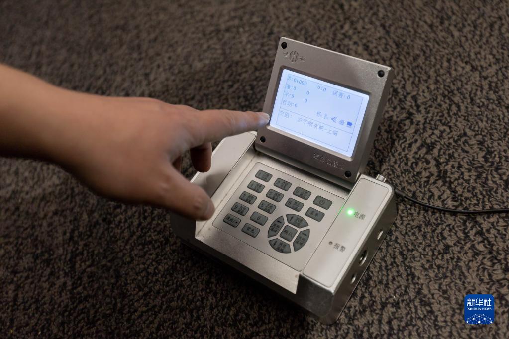 2月1日凌晨5時(shí)許在DJ7716次高鐵確認列車(chē)上拍攝的上海高鐵基礎設施段添乘人員調試好的便攜式添乘儀。該設備通過(guò)記錄列車(chē)行進(jìn)中陀螺儀的數據變化,獲得線(xiàn)路晃動(dòng)的數據,判斷列車(chē)平穩運行程度。