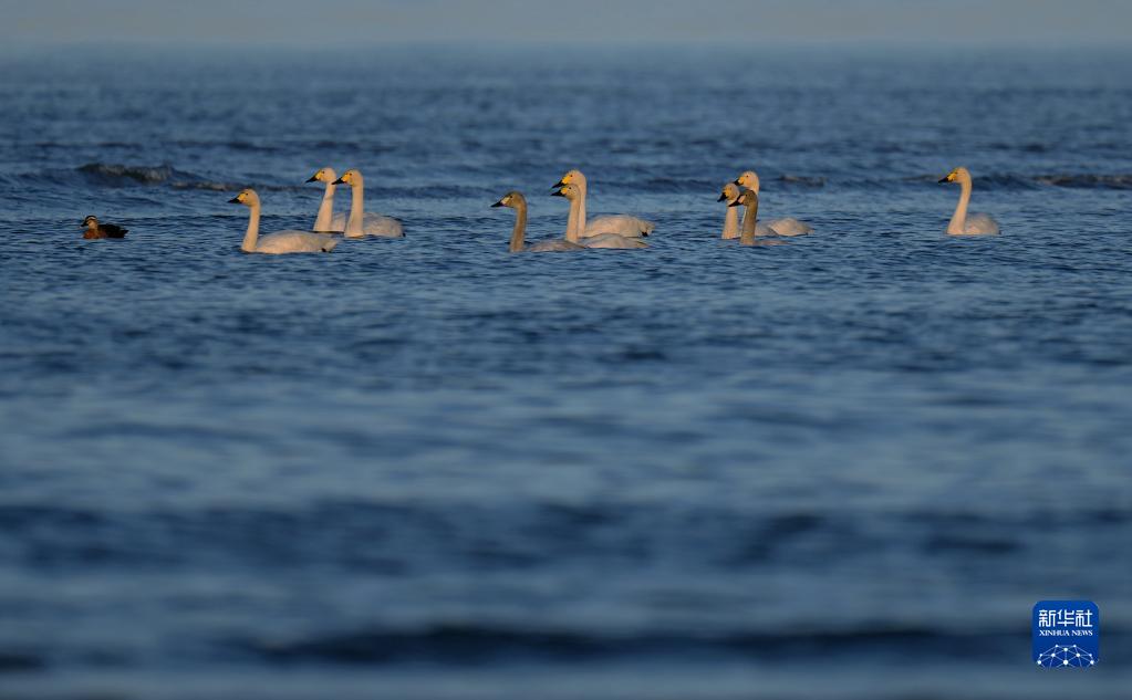 一群天鵝在閩江河口濕地覓食(1月31日攝)。