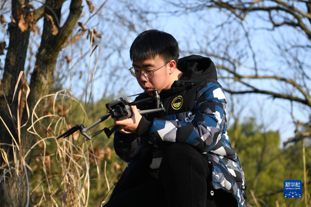 1月31日,郭昊在安徽省六安市舒城縣湯池鎮準備進(jìn)行無(wú)人機航拍。