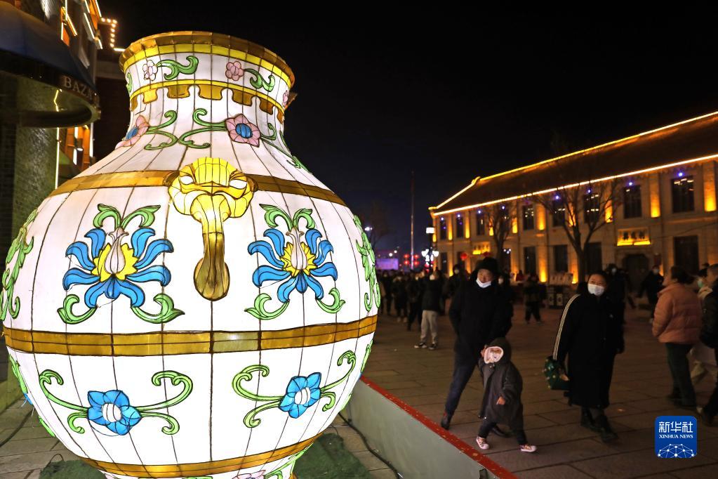 2月3日,游客在營(yíng)口遼河老街觀(guān)賞花燈。