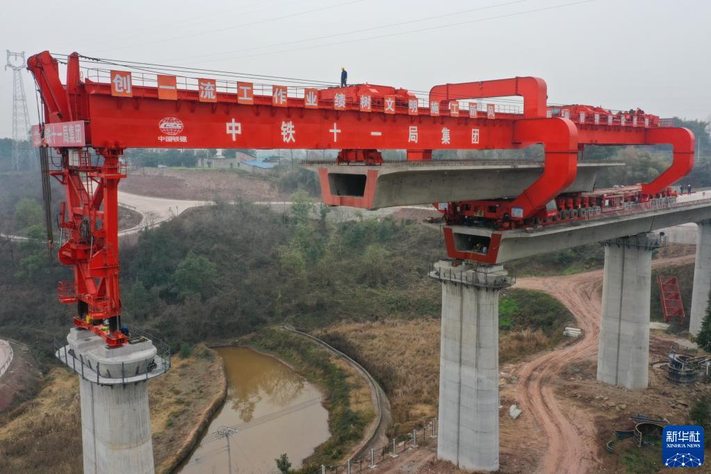 當天,在由中鐵十一局集團承建的渝昆高鐵川渝段站前一標建設施工現場(chǎng),830噸大型箱梁在鴨子堡特大橋成功架設,標志著(zhù)渝昆高鐵重慶段實(shí)現節后全面復工復產(chǎn)。