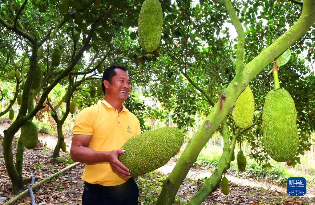 海南省三亞市育才生態(tài)區那受村農戶(hù)蘇正榮展示采摘的菠蘿蜜(2月2日攝)。