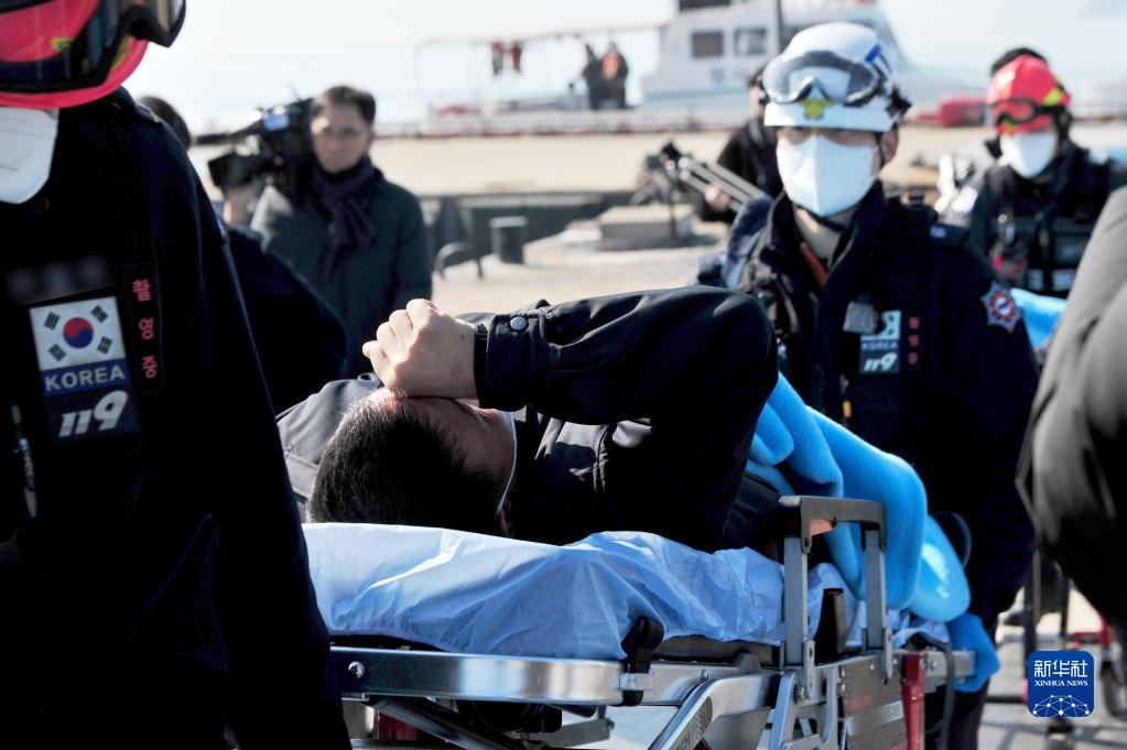 2月5日,在韓國全羅南道木浦市一碼頭,獲救船員被送往醫院。