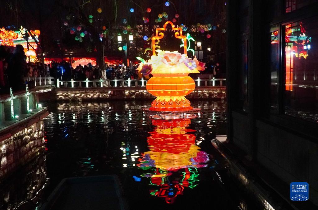 元宵節來(lái)臨之際,山東省濟南市的趵突泉等多處名泉,潺潺泉水與彩燈交相輝映,流光溢彩的獨特景觀(guān)吸引了不少市民前來(lái)賞泉觀(guān)燈,喜迎元宵佳節。