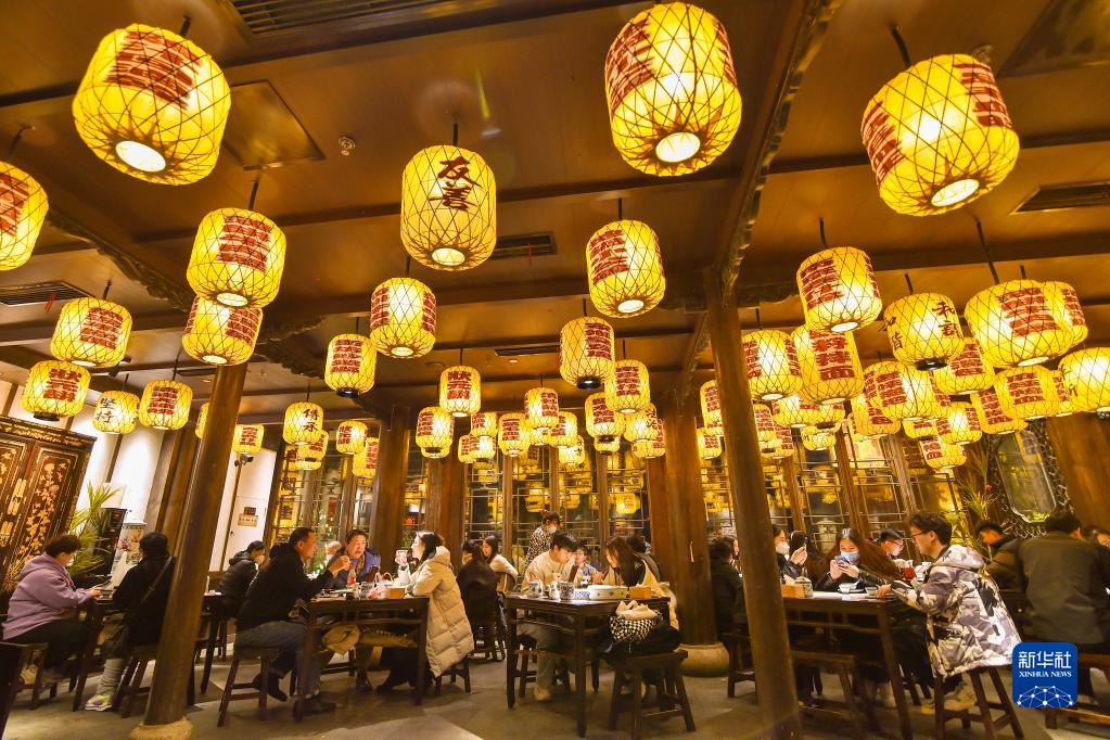 1月31日,游客在南京市老門(mén)東景區一家餐廳品嘗金陵風(fēng)味美食。