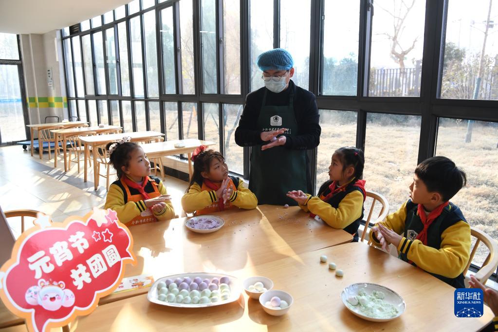 2月5日,合肥市建平實(shí)驗小學(xué)南艷分校學(xué)生在做湯圓。