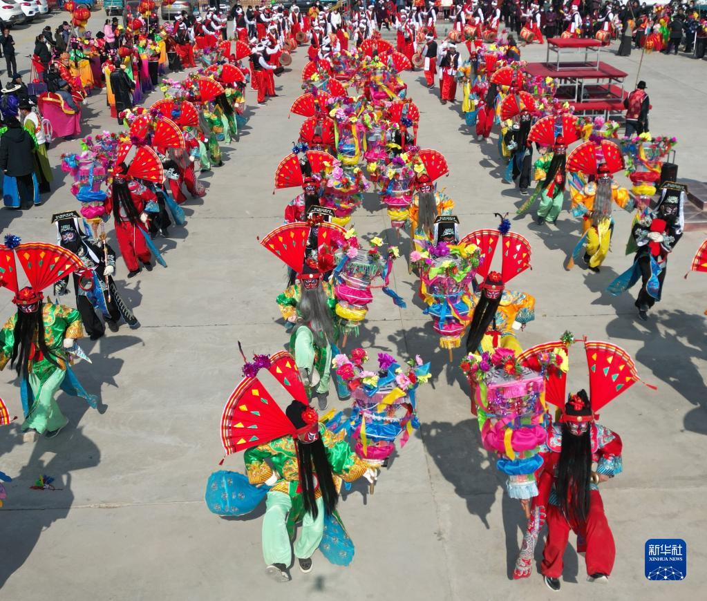 2月5日,在甘肅省永靖縣劉家峽鎮城北新村,鄉村秧歌隊在表演秧歌。