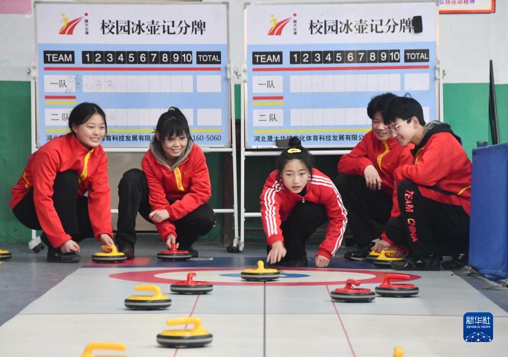 2月6日,在河北省邯鄲市永年區第十中學(xué),學(xué)生參加陸地冰壺訓練。