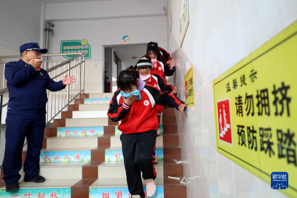 2月6日,在隆堯縣第二實(shí)驗小學(xué),學(xué)生進(jìn)行火災逃生演練。
