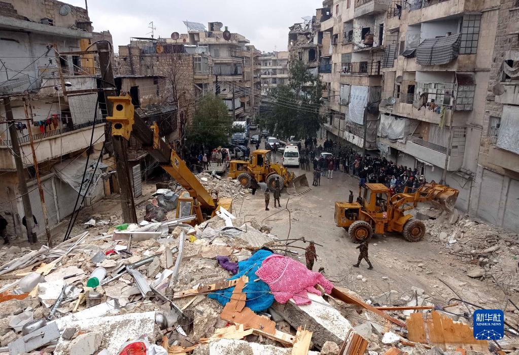 這是2月6日在敘利亞阿勒頗省拍攝的倒塌的建筑。