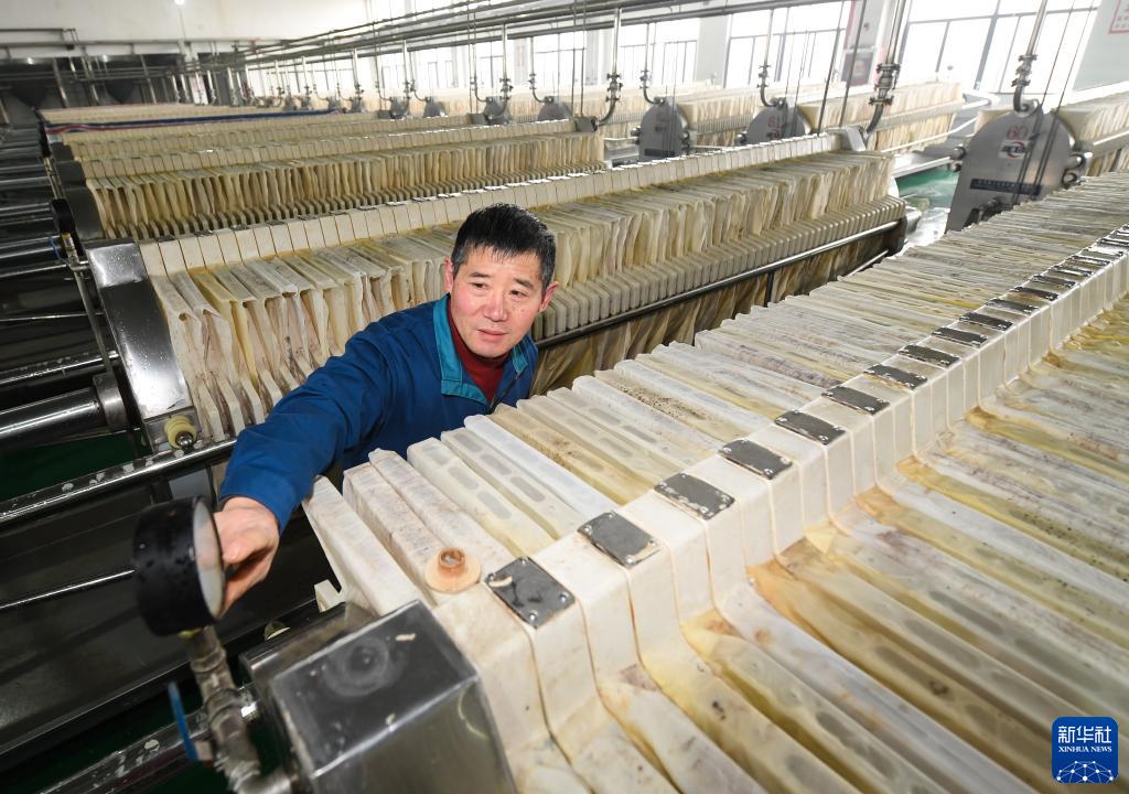 2月7日,在位于紹興市越城區的古越龍山釀酒一廠(chǎng),釀酒師宋星雷在壓榨車(chē)間查看進(jìn)料管壓力。新華社記者 翁忻旸 攝