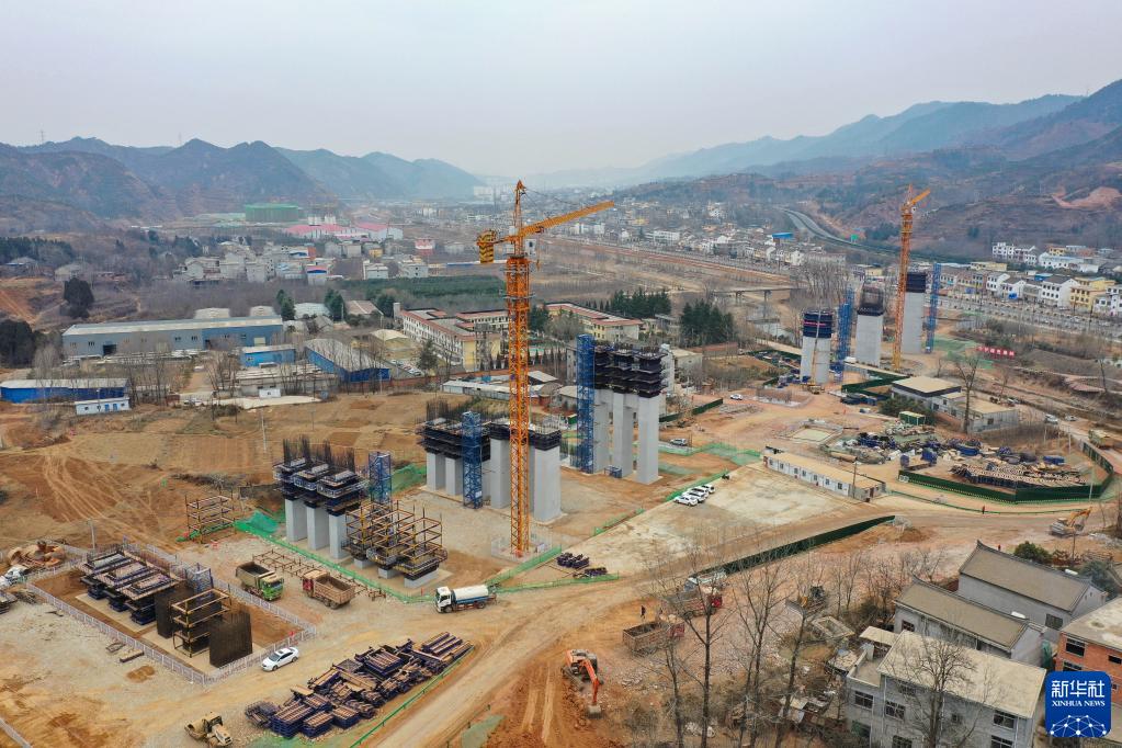 這是2月6日拍攝的位于陜西省商洛市的西十高鐵南秦河特大橋施工現場(chǎng)(無(wú)人機照片)。