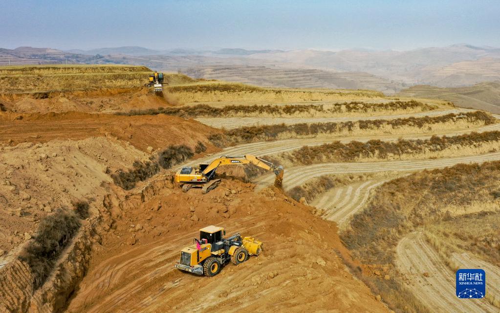 早春時(shí)節,多臺大型機械設備在寧夏固原市西吉縣的梯田上為建設高標準農田忙碌作業(yè)。今年寧夏全區計劃新建和改造高標準農田93.7萬(wàn)畝,重點(diǎn)向西海固地區傾斜,其中西吉縣今年計劃建設高標準農田25萬(wàn)畝。
