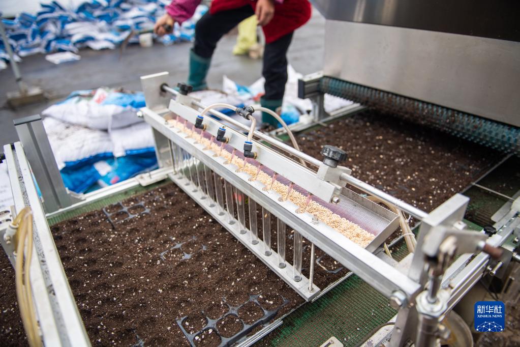 2月8日,在鼎城區國家現代農業(yè)產(chǎn)業(yè)園一處蔬菜育苗基地,一臺全自動(dòng)播種機在作業(yè)。