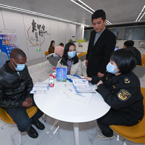 2月8日,在湖州市吳興區政務(wù)服務(wù)中心的中小微企業(yè)一站式服務(wù)平臺,市場(chǎng)監管、人力社保、銀行、招商局等多部門(mén)共同為企業(yè)提供創(chuàng )業(yè)、就業(yè)、人才和金融等政策解讀及相應政務(wù)服務(wù)。