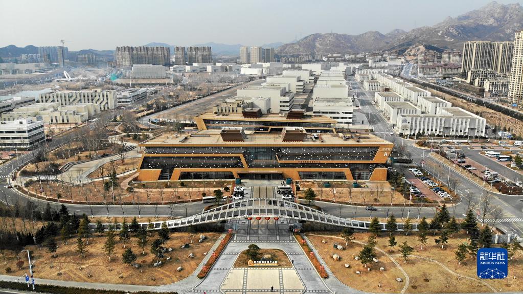 位于青島西海岸新區的青島東方影都影視產(chǎn)業(yè)園(2月8日攝,無(wú)人機照片)。